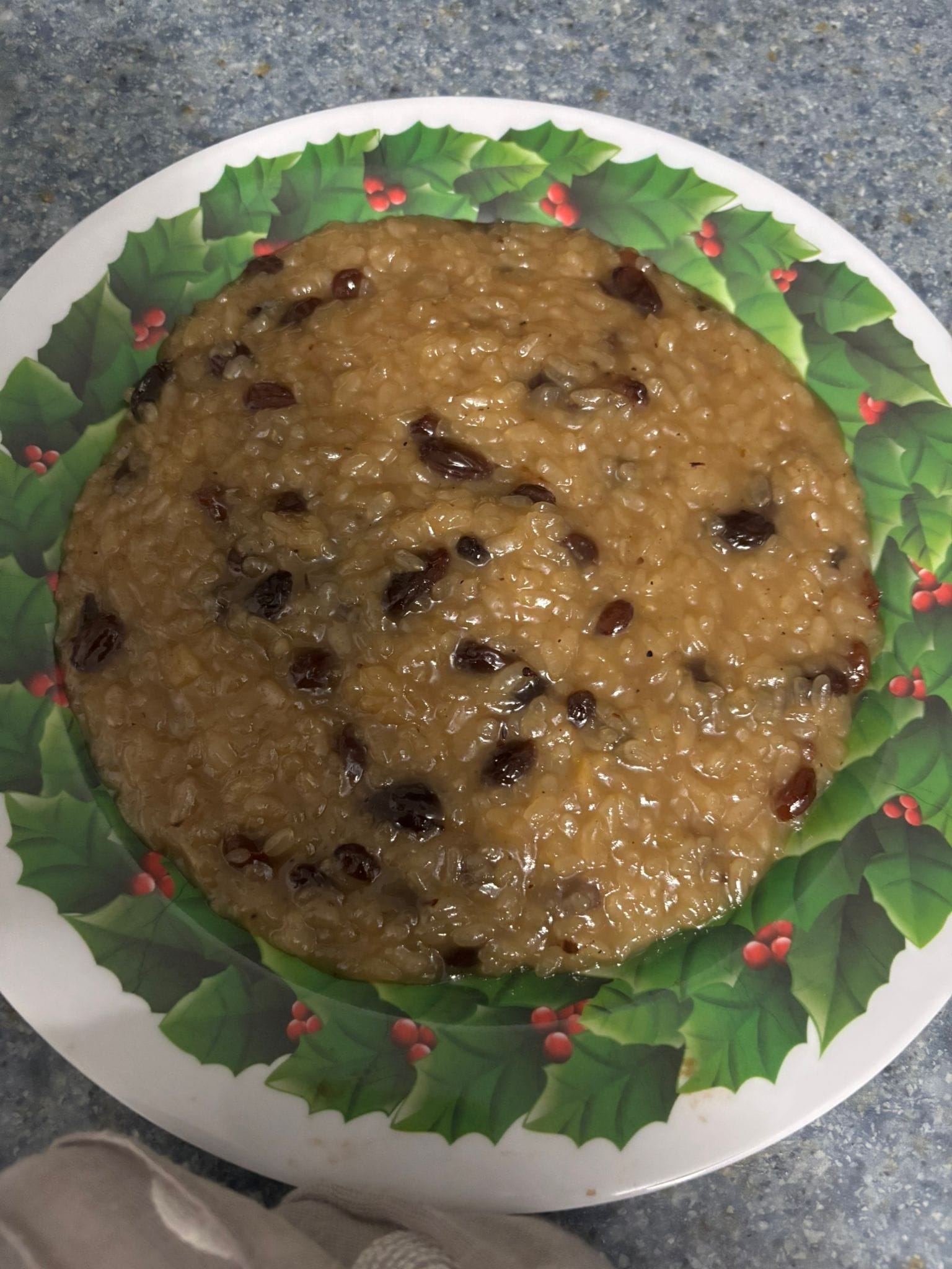 Cuando lo terminaba lo servía en un plato llano y ella y yo nos comíamos el jengibre y el poquito de pegao. Luego, freía las almojábanas y adornaba el arroz con dulce.