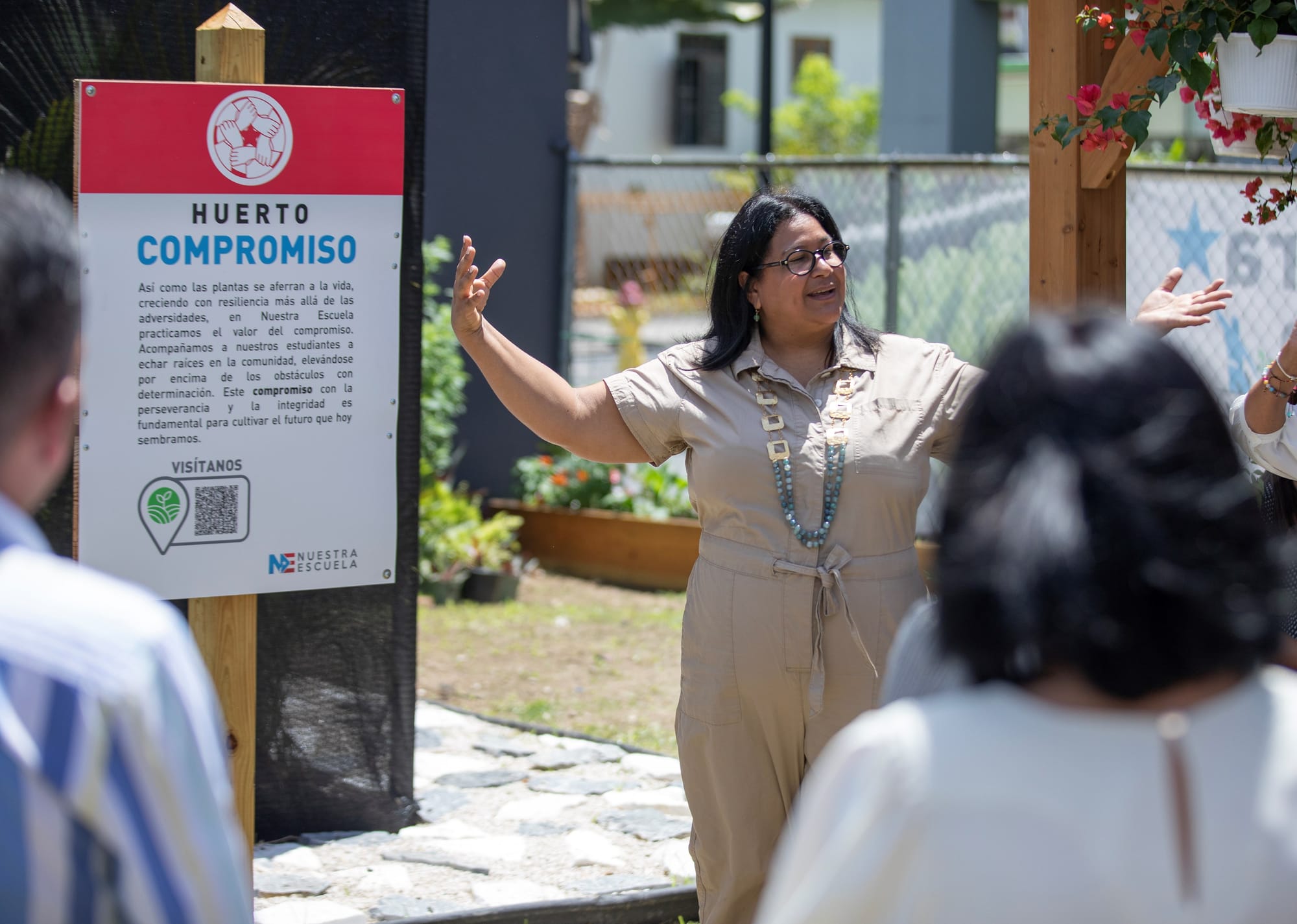 “Es una alegría inmensa inaugurar “Nuestra Tierra”, la escuela vocacional de agricultura de Nuestra Escuela. Desarrollamos, gracias al municipio de Caguas, agencias y organizaciones amigas, cuatro huertos urbanos donde estamos sembrando alimentos, plantas medicinales, plantas frutales, creamos espacios para hidropónicos y un mariposario. Compromiso, Patria, Solidaridad y Calidad de Vida son los nombres que identifican cada espacio porque en ellos también estamos sembrando en nuestros jóvenes conciencia ambiental, aprecio a la ecología y amor a Puerto Rico”, expresó Ana Yris Guzmán, presidenta ejecutiva de Nuestra Escuela.